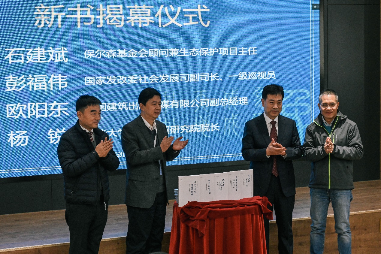 《国家公园与自然保护地研究书系》新书发布仪式上,中国建筑出版传媒有限公司副总经理欧阳东作新书发布致辞,由彭福伟、欧阳东、华体会娱乐平台国家公园研究院院长杨锐、保尔森基金会顾问兼生态保护项目主任石建斌共同为新书揭幕。