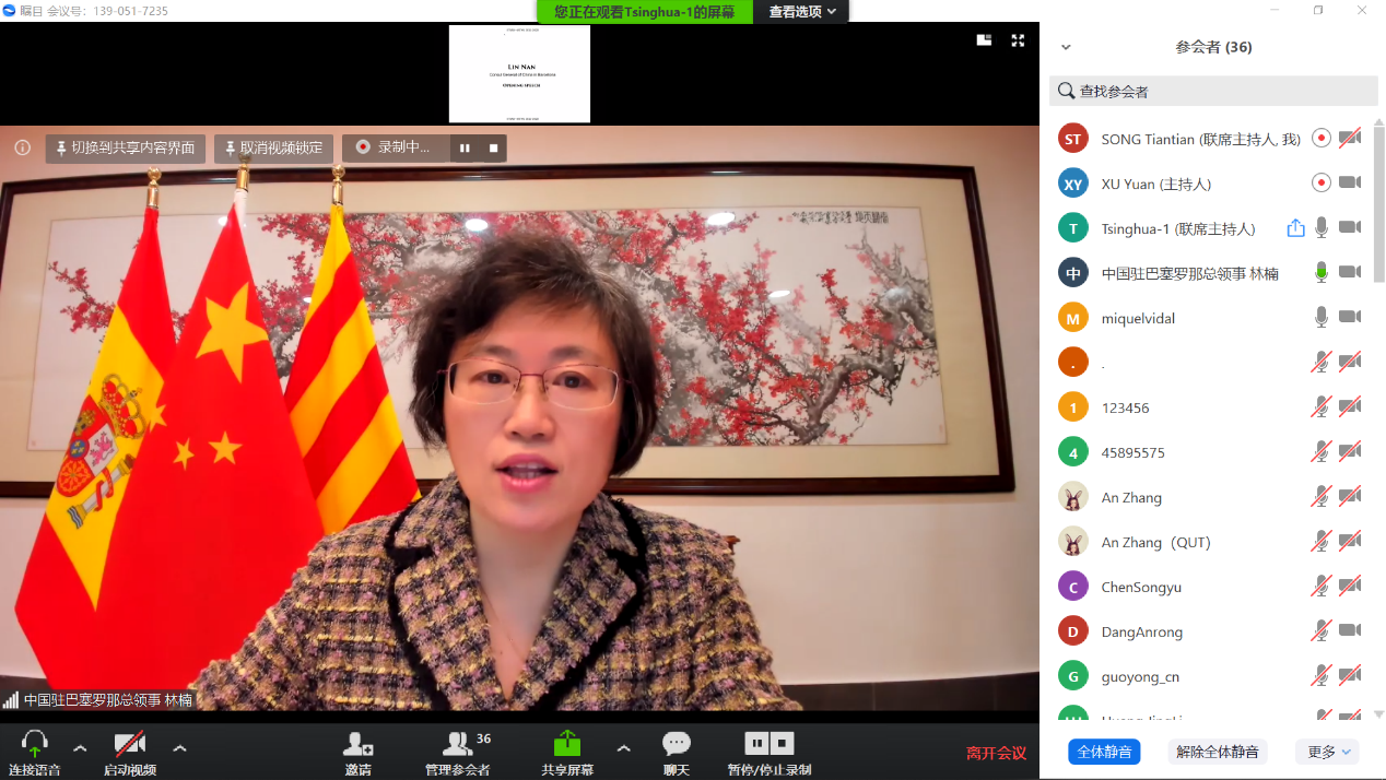 风景园林联合教学十周年庆典联欢会邀请项目发起人朱育帆、加泰罗尼亚理工大学巴塞罗那建筑学院米盖尔·维达尔(Miquel Vidal)教授、玛丽娜·切维拉(Marina Cervera)副教授,以及十年间参与课程的教师、学生代表参加。林楠总领事对联合教学十周年表示热烈祝贺,希望两所享誉世界的知名学府能够进一步推动国际学术研讨和联合教学模式的创新,助力中西文化和学术交流合作迈上更高台阶。总领馆愿继续发挥桥梁纽带作用,为两校深化合作提供协助和服务。