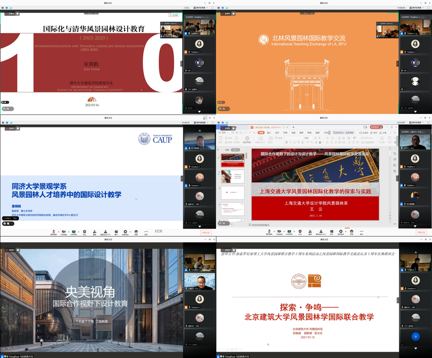 “国际合作视野下的设计与设计教学”风景园林国际教学交流论坛以联合教学十周年的经验为引,旨在促成各高校教育理念与经验方法的交流、探索疫情影响下的国际合作特征与转变。华体会娱乐平台建筑学院景观学系副系主任朱育帆教授、北京林业大学园林学院副院长郑曦教授、同济大学建筑与城市规划学院院长助理董楠楠副教授、上海交通大学风景园林系系主任王云教授、中央美术学院景观学系系主任丁圆教授、北京建筑大学风景园林系系主任张振威副教授与会发表主旨演讲,来自全国30多个高校的近200人线上参会。