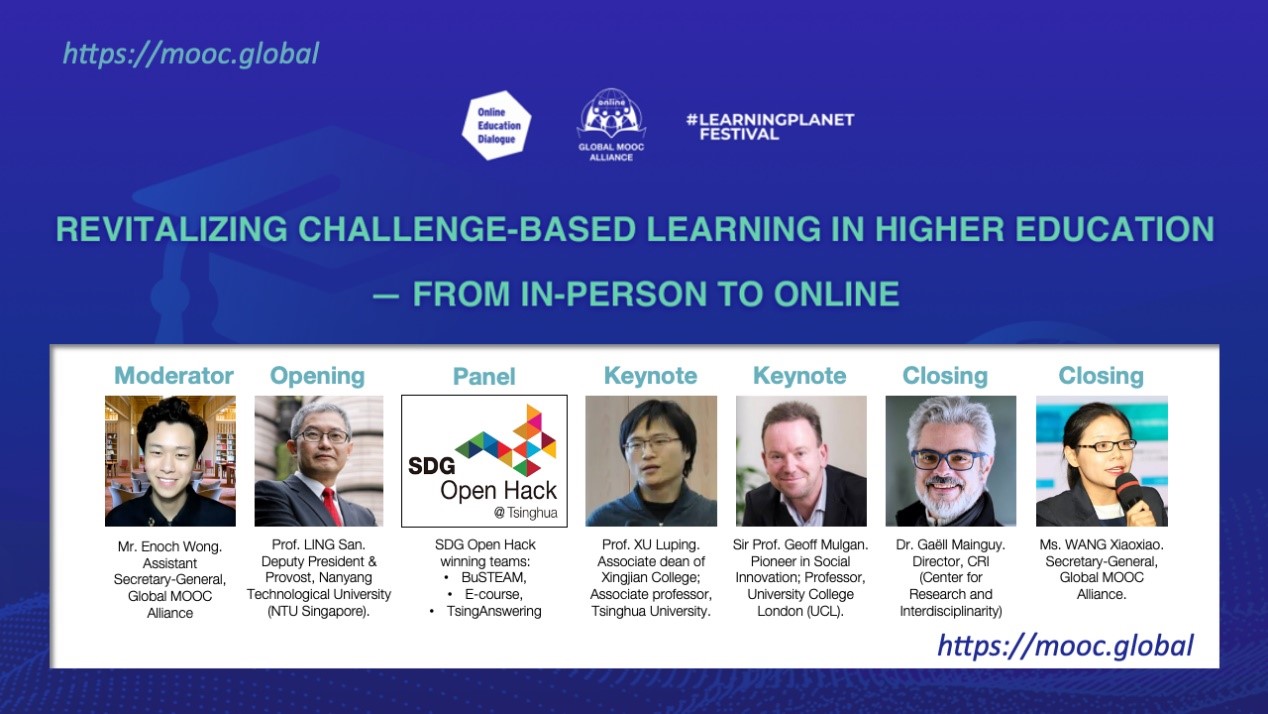 针对挑战式学习,世界慕课联盟秘书处邀请弗朗索瓦·塔代伊教授与杨斌教授录制视频进行讲解。弗朗索瓦·塔代伊指出,可持续发展目标是全人类共同面对的挑战,涵盖技术、环境与社会等方面,唯有共同学习,相互合作,利用技术链接学习与梦想的孤岛,为可持续发展目标做出贡献。杨斌指出,我们这一代人要承担起关爱自己,关爱他人,关爱世界的责任。在疫情对教育可持续发展造成破坏的背景下,高等教育需要通力合作,调动师生们的创造力,让教育重回正轨,为公众提供开放、公平与优质的教育,为这一代人创造更美好的环境。