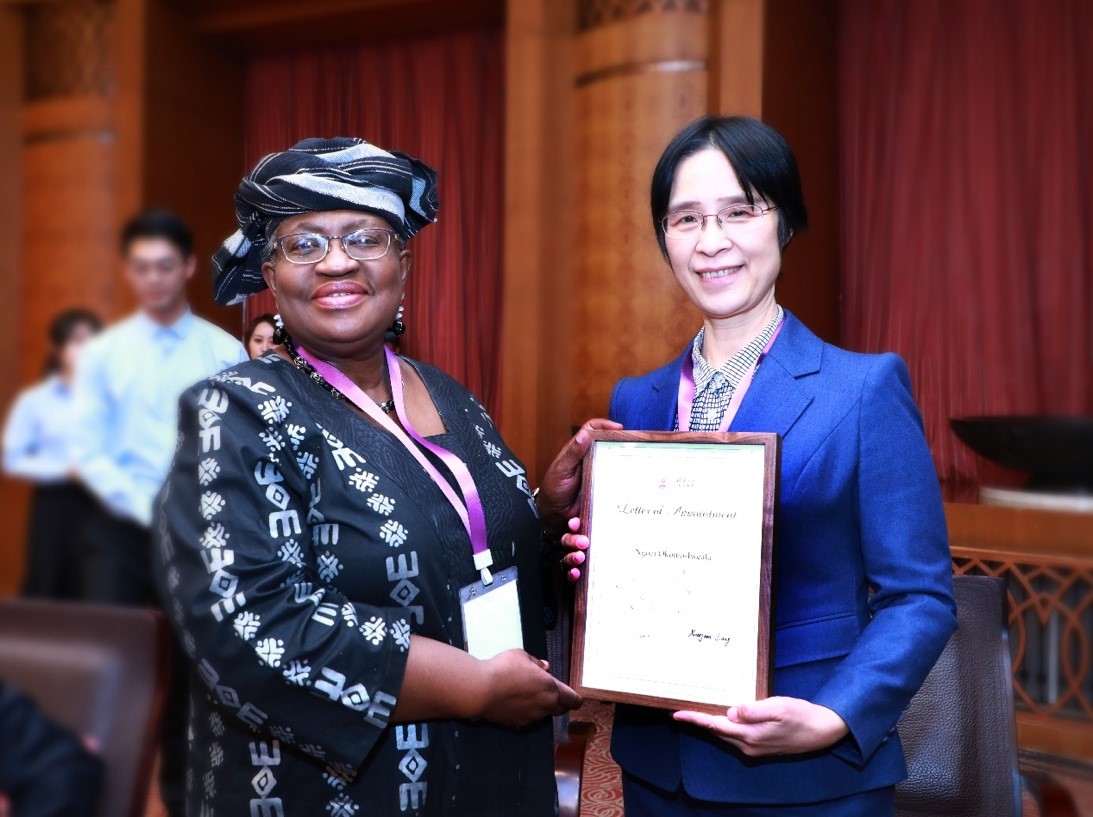 江小涓为恩戈齐·奥孔约-伊韦阿拉颁发顾问委员聘书