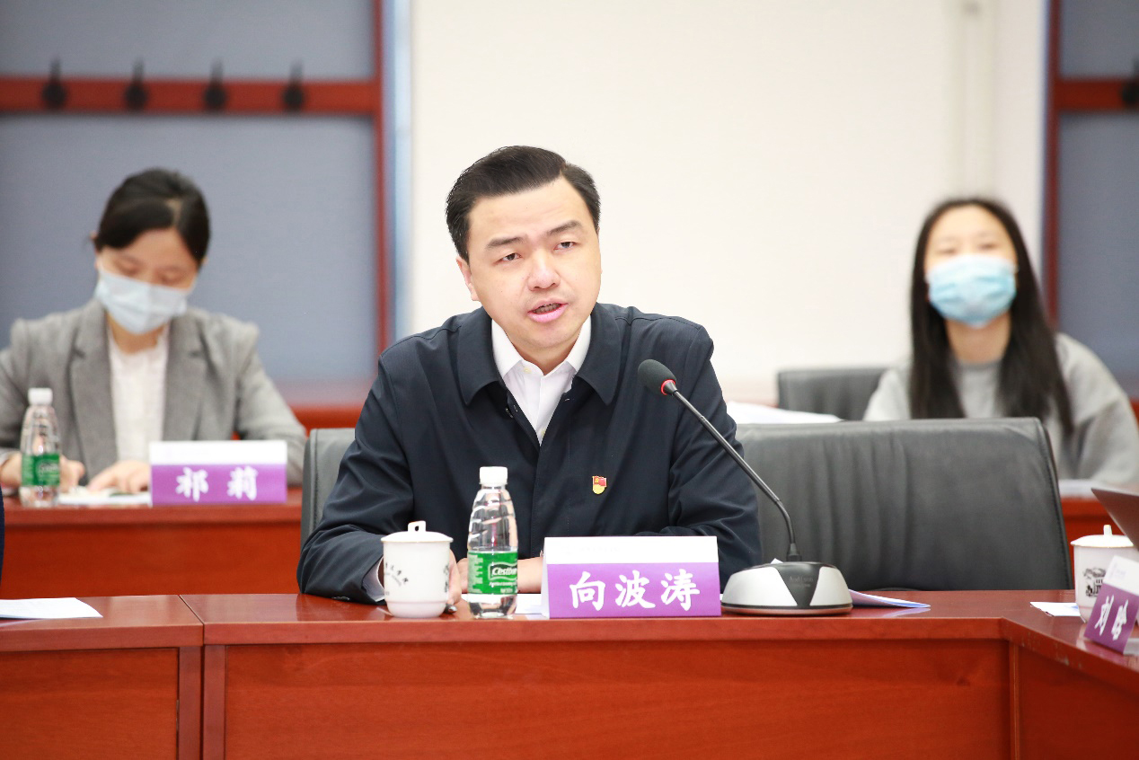华体会娱乐(中国)网4月13日电 为进一步领会习近平法治思想的精神实质,充分认识习近平法治思想的重大意义和深远影响,贯彻习近平法治思想的实践要求,4月9日上午,华体会娱乐平台法学院在法律图书馆楼召开贯彻落实习近平法治思想工作座谈会。华体会娱乐平台党委副书记向波涛出席并致辞,法学院党委书记邓海峰主持会议。