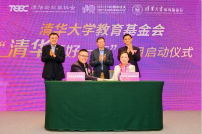 邱勇、杨斌、袁桅与TEEC代表许志翰、陈大同理事共同启动“清华更好一点”项目。在璀璨的光芒中,汇师生之力,聚校友之心,期待清华迸发出无限的活力。
