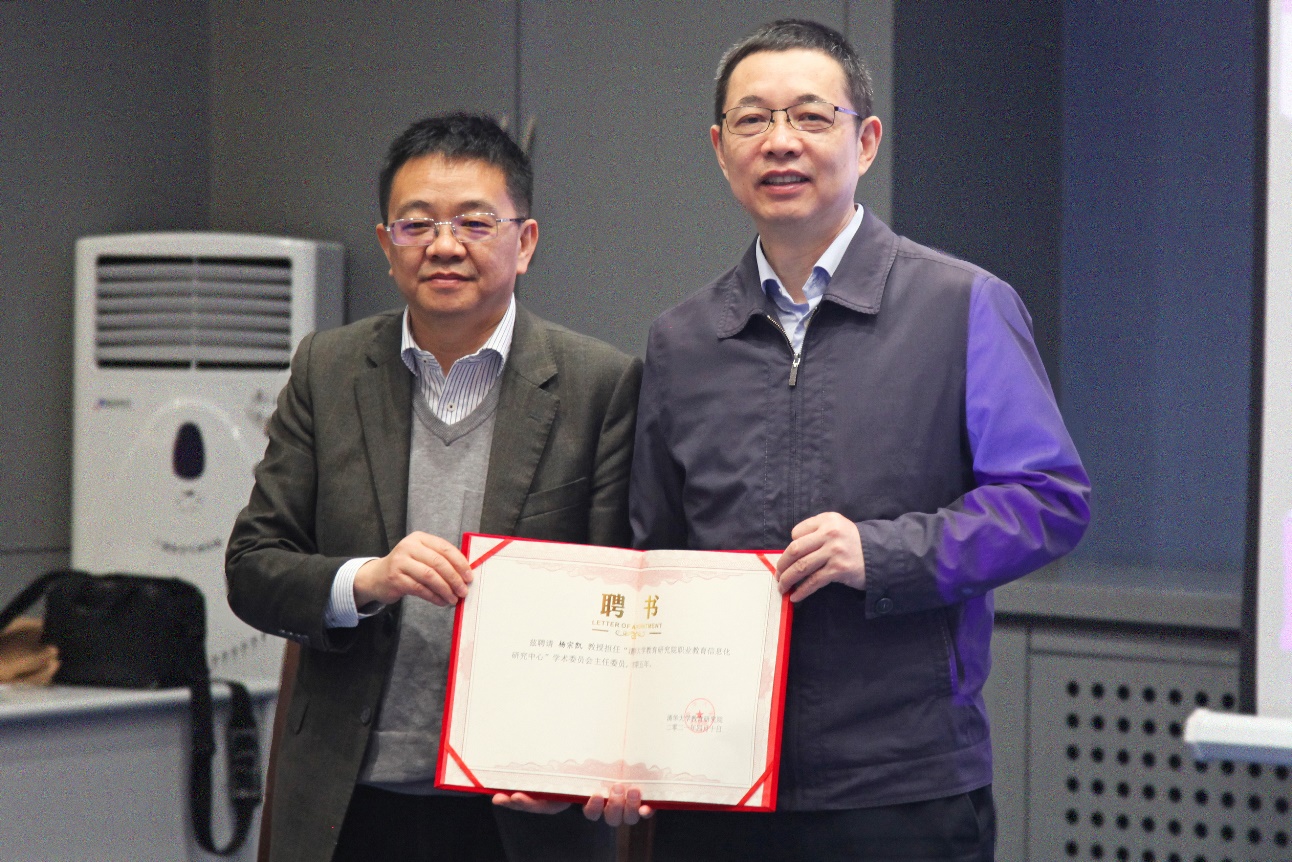 教育研究院“职业教育信息化研究中心”成立仪式上,彭刚向学术委员会委员颁发聘书。教育部教育信息化委员会副主任、西安电子科技大学校长杨宗凯教授受聘为学术委员会主任,国家教育行政学院职业教育研究中心主任邢晖教授、江南大学教育学院前院长陈明选教授受聘为学术委员会副主任,山东大学信息化办公室主任葛连升教授、北京师范大学人工智能学院宋继华教授、广西开放大学校长王兴辉教授、美国内华达大学雷诺分校刘乐频教授、北京大学教育学院贾积有教授、广东工贸职业学院院长何汉武教授、华体会娱乐平台基础工业训练中心主任李双寿教授受聘为学术委员会委员。