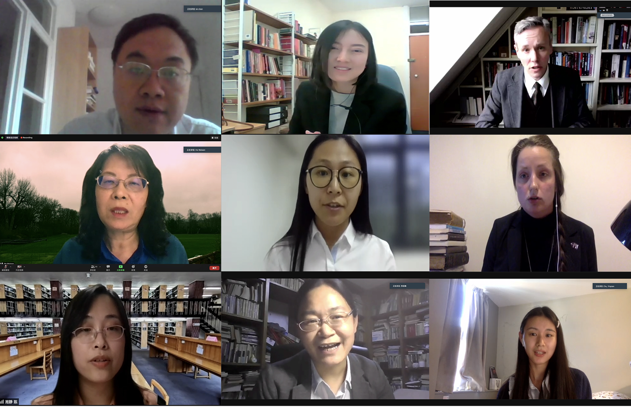 “大流行病时期的生命政治学”研讨由上海外国语大学王欣教授和埃克塞特大学高昊高级讲师主持,学者们提出对疫情现状的研究、反思与未来解决方案。剑桥大学高级讲师玛丽•奥古丝塔•布雷泽尔顿(Mary Augusta Brazelton)指出中国在流行病疫苗的研发和分配方面给整个国际社会提供了模范。埃克塞特大学多拉•瓦尔加(Dora Varga)高级讲师结合20世纪50年代小儿麻痹症流行病的经验作出呼应。埃克塞特大学戴维•琼斯(David Jones)教授和张琳博士分别从视觉语言和博物馆教育的维度,综述人类处理疫情的有效方法。北京外国语大学张剑教授朔源17世纪以来主题为疫情的英国经典诗歌和文学,阐释其中贯穿的对个体与共同体关系的价值意识的两大脉络,并进一步解释了他们在当下的变奏和共鸣,引发了深入的讨论。