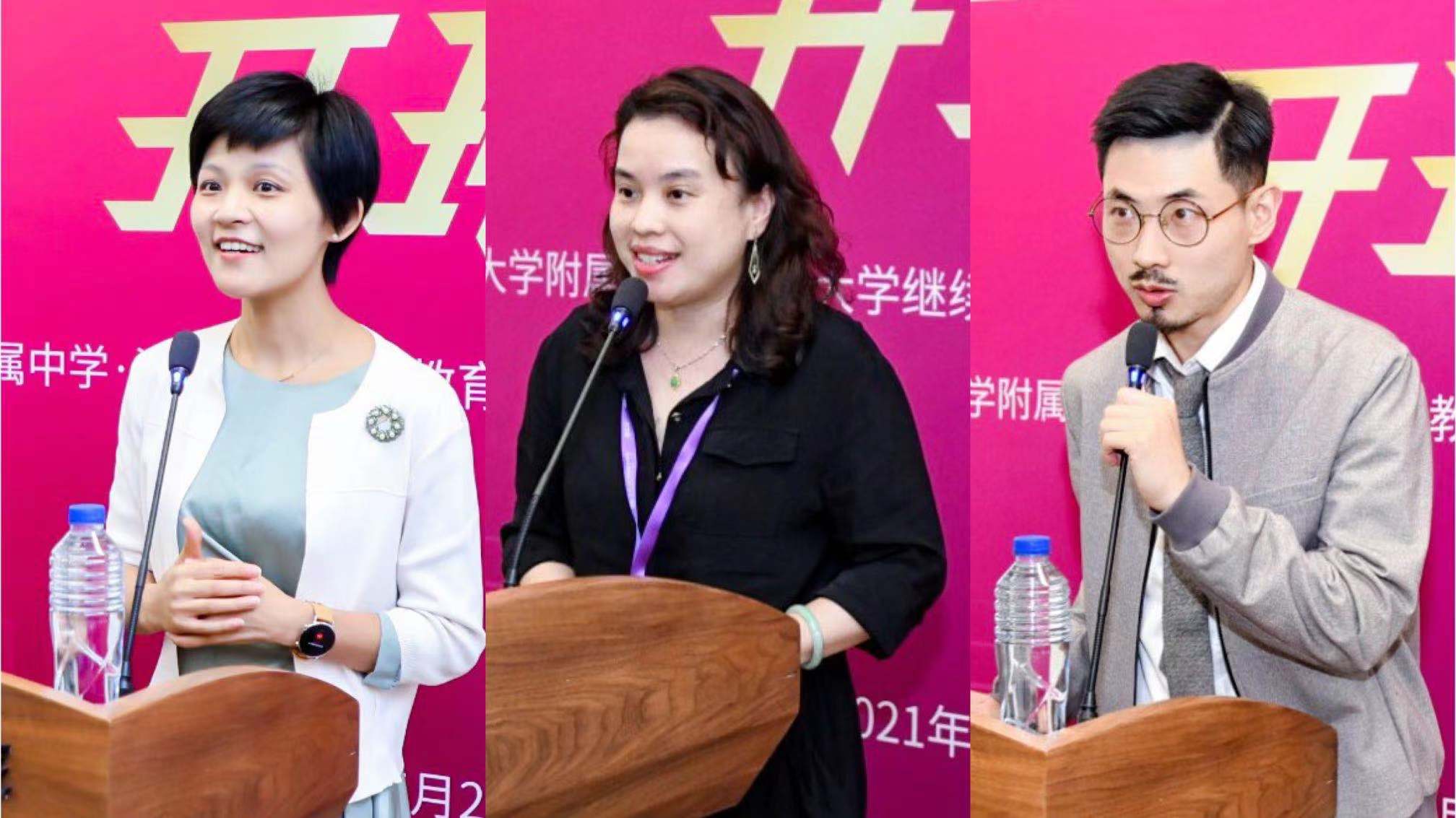 清澜山学校行政校长林静姿、中黄国际教育集团COO兼高级副总裁张玉靖、牛津AQA考试局首席教育官帅威代表学员发言。林静姿分享了她从事教育事业以来的切身感受,并表示项目为各位同学创造了专业的学术交流平台。张玉靖表示,作为一个跨行业的教育从业者,希望通过本项目的学习,促进对领导力赋能专业的学习和理解,从而更好地胜任教育事业。帅威表示,希望通过本项目的学习,找到国际教育与本土教育的契合点。