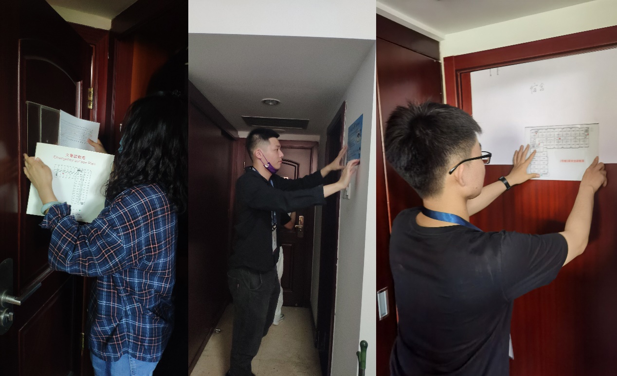 在安全海报入户张贴中,师生党员深入到每个学生宿舍,就安全疏散逃离、典型电信诈骗手段进行现场教学,提升同学们的安全意识和风险防范能力。