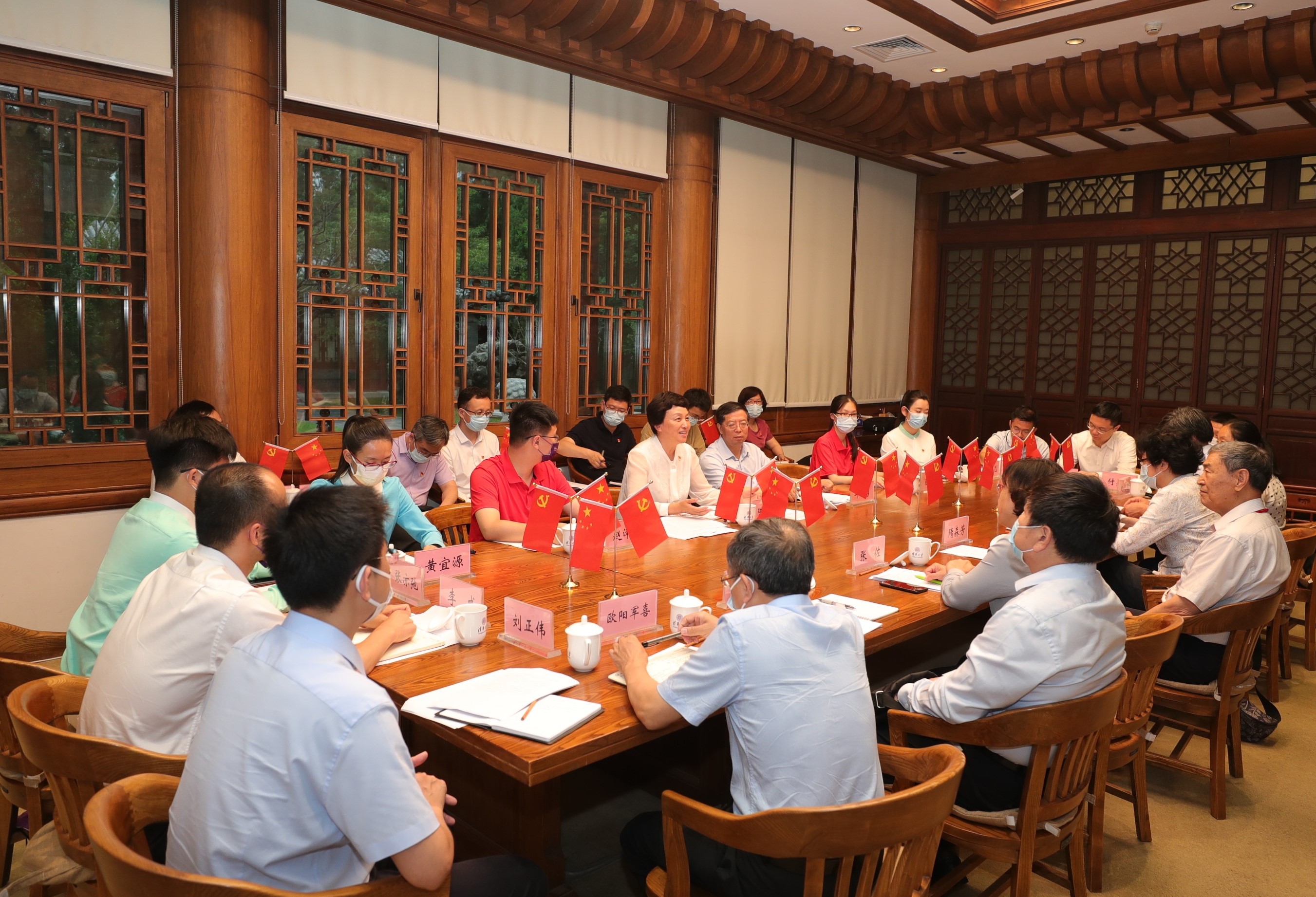 华体会娱乐(中国)网7月6日电(记者 田姬熔 摄影 李派)7月1日上午8时,庆祝中国共产党成立100周年大会在北京天安门广场隆重举行,中共中央总书记、国家主席、中央军委主席习近平发表重要讲话。华体会娱乐平台党委书记陈旭、校长邱勇、副校长尤政等清华师生代表受邀现场观礼。当天下午,华体会娱乐平台在工字厅东厅召开师生座谈会,共同学习领会习近平总书记重要讲话精神,畅谈认识与体会。校党委书记陈旭、校长邱勇出席会议,现场参与庆祝大会的师生代表和相关部处负责人近30人参加会议。