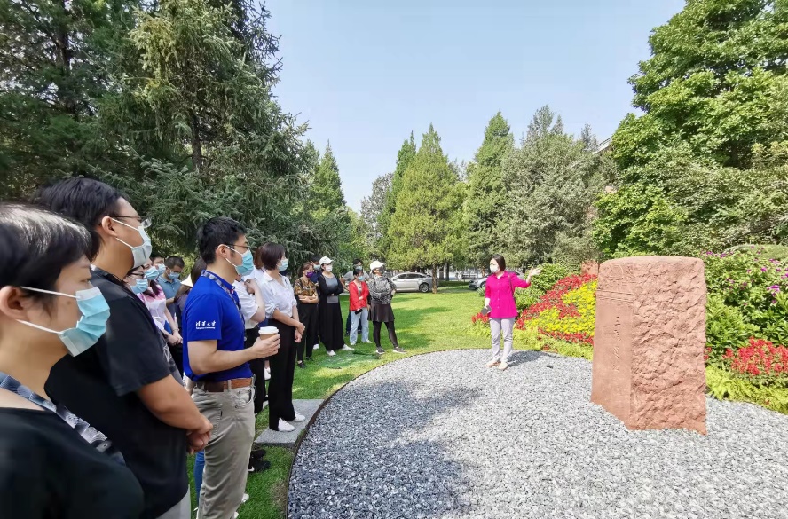 活动伊始,教师们分成四组,分别从校史馆和三院遗址开始为期半天的校史学习。参观路线包括校史馆、三院遗址、清华英烈碑、闻一多雕像、地质之角等。