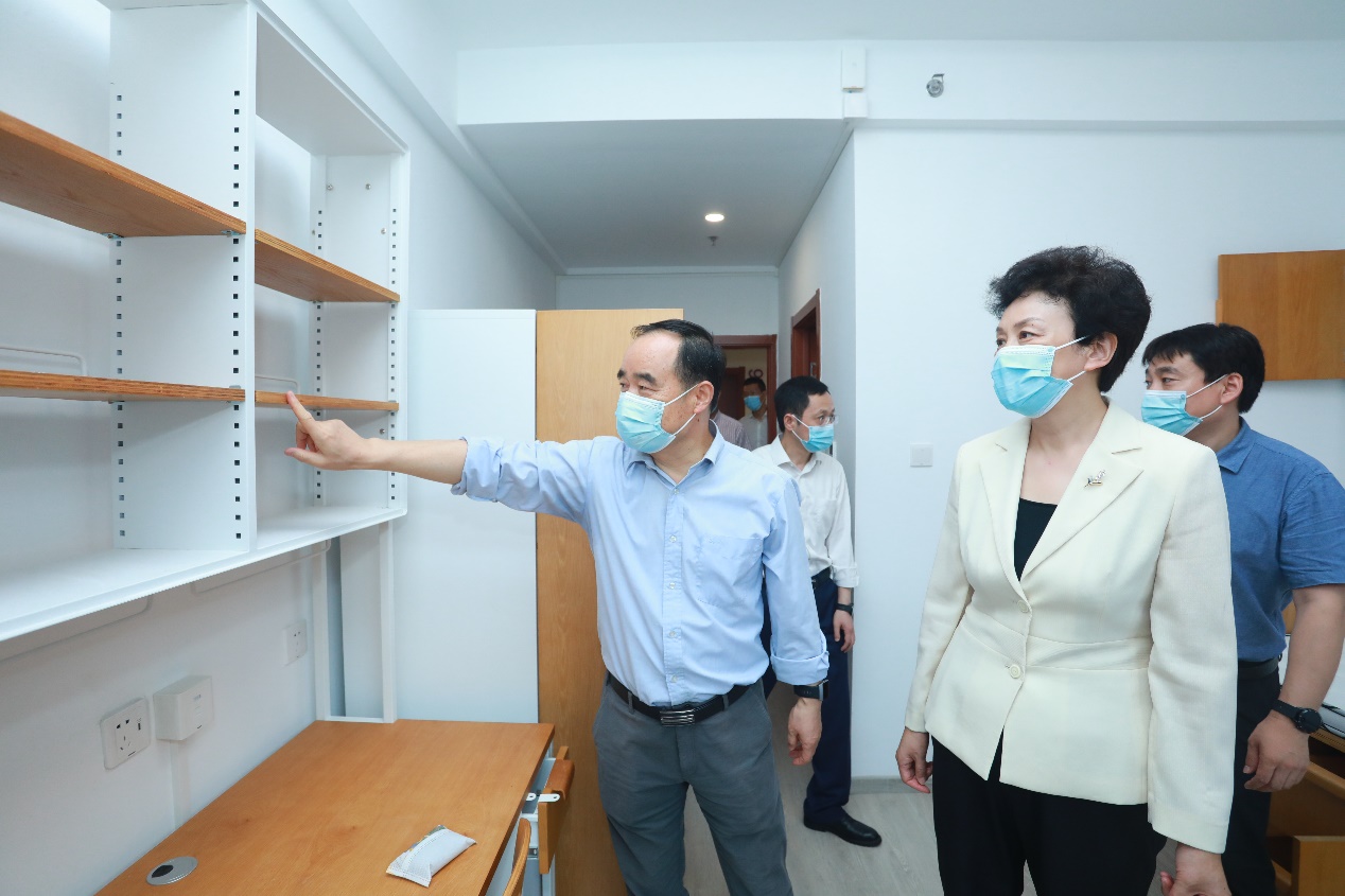 华体会娱乐平台双清公寓南楼博士生宿舍于今年秋季学期开始正式启用,共有学生宿舍600余间,可容纳1100余名同学入住。陈旭先后查看学生洗衣间、研讨间等公共服务设施,并走进宿舍与博士生进行交流,询问他们的生活学习情况,同时对提升宿舍服务提出改进要求。