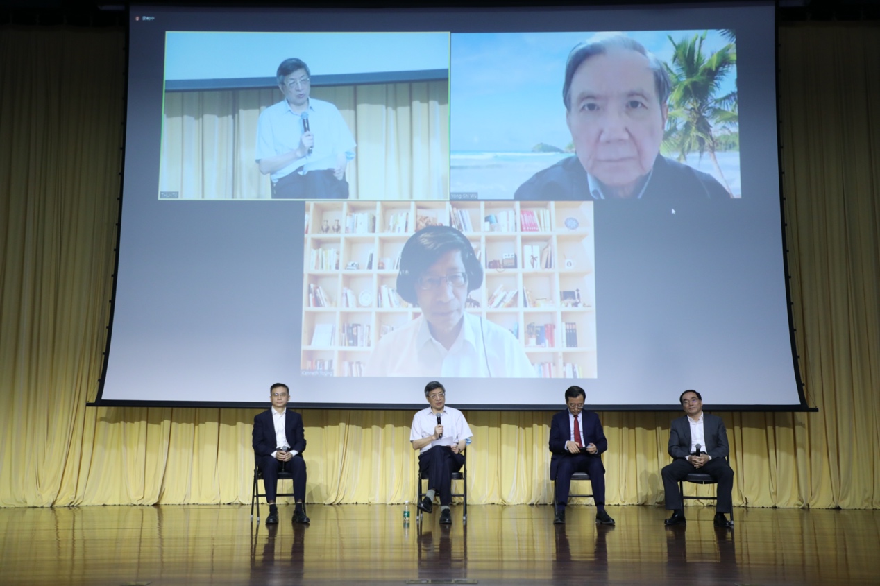 在圆桌讨论环节,张杰以杨振宁先生的文章《20世纪理论物理学发展的主旋律》开启了整场讨论。中国科学院高能物理研究所陈和生院士介绍了粒子物理的发展历程与面临的挑战。香港中文大学杨纲凯教授在讨论中向年轻学子提出建议,要从小问题中提出大突破。犹他大学吴咏时教授展望了基础物理学的未来发展,中国科学院物理研究所向涛院士围绕基础物理的理论和应用进行研讨,中国科学院理论物理研究所蔡荣根院士则从宇宙学的角度出发,提出影响宇宙物理学发展的诸多新问题。