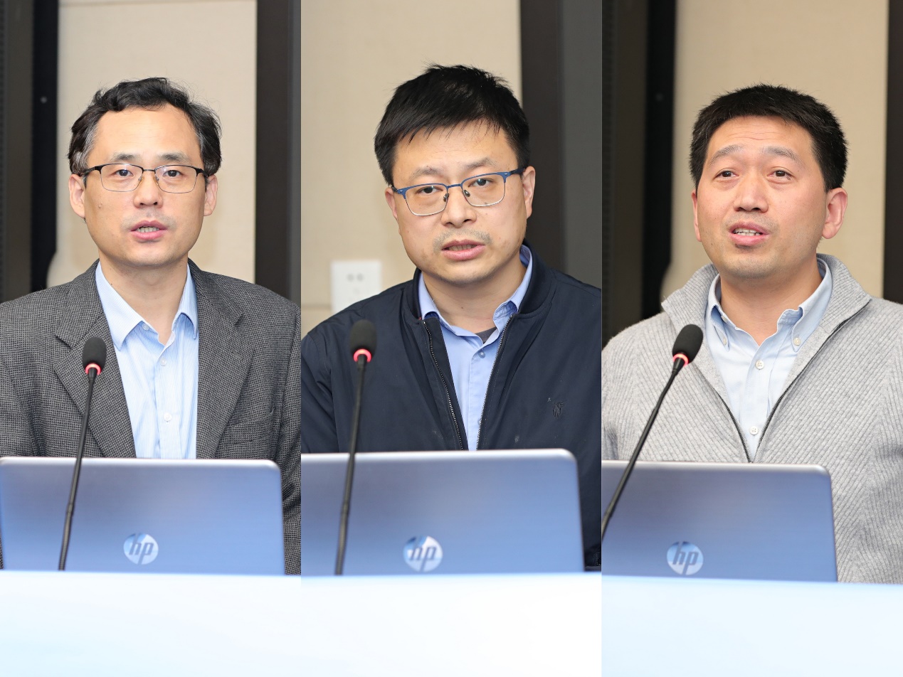 王亚愚、刘磊、时松海(从左至右)汇报学科发展规划
