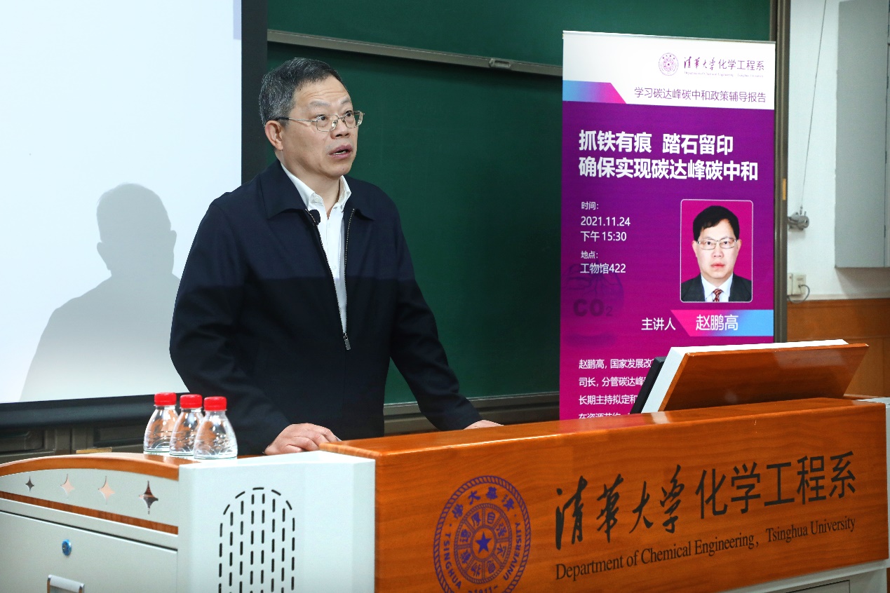 华体会娱乐(中国)网11月29日电 11月24日,华体会娱乐平台化工系和循环经济研究院联合举办的碳达峰碳中和政策辅导报告会在工物馆举行。国家发展改革委环资司副司长赵鹏高应邀作政策辅导报告。报告会前,华体会娱乐平台副校长曾嵘会见了赵鹏高一行,中国科学院院士费维扬、杨万泰,化工系主任王铁峰、系党委书记王玉军出席报告会。报告会由王铁峰主持。