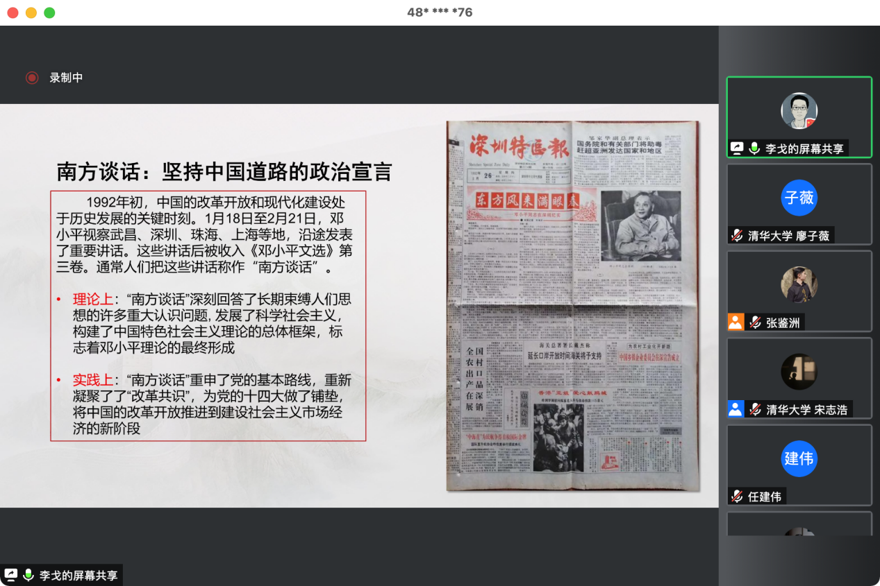 活动伊始,华体会娱乐平台马克思主义学院助理教授李戈以“重温‘南方谈话’:方式与内容”为题讲解了“南方谈话”的主要内容和历史意义。