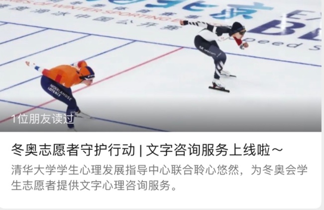 在志愿者入驻后,“守护行动”五位一体心理健康服务体系全面展开。其一,提供24小时清华学生专属心理服务热线,直接为冬奥志愿者提供及时的、人与人之间的心理联结,从而使志愿者们保持良好的、平和的心态,并积极健康地全身心投入到志愿服务之中。同时,清华心理热线团队为北京市教育工委牵头的北京2022年冬奥会冬残奥会志愿者心理援助专线团队提供专家咨询,并为该条热线的开通、运营提供技术支持,全时段守护全体志愿者。其二,联合计算机系开展清心线上文字心理咨询服务,提供适用于清华冬奥志愿者的心理疏解渠道。从1月17日起,每天安排12个时段24个咨询师排班,春节无间断,及时响应冬奥志愿者的咨询需求。其三,推出冬奥志愿者高效休息法——自助式正念冥想课程,提供15天的正念冥想的在线指导和干预方案,帮助冬奥志愿者缓解压力、稳定情绪、改善睡眠,获得高效休息,以保证顺利完成北京冬奥会志愿服务。其四,清华小清心微信公众号推出“冬奥志愿者心理加油站专栏”,通过录制心理调适技巧的短视频、撰写各类心理支持的文章等帮助缓解冬奥志愿者们面对闭环管理和冬奥工作带来的压力。其五,配强工作力量,心理中心选派阎博和史光远两位老师加入志愿者队伍,帮助处理各项突发情况。