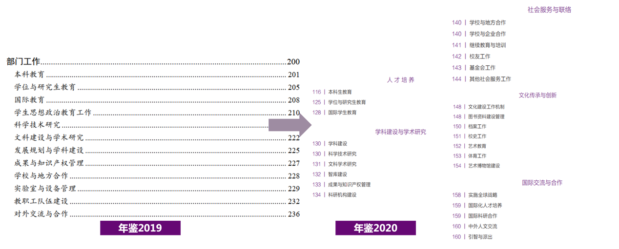 “在调研、对比、分析之后,出于对信息公开工作和对学校工作的整体把握,我们改变了以往按部门工作划分的基本框架,选择以高校五大任务职能作为基本逻辑,来全面展现学校年度主要工作。”党办校办信息室徐思羽打开了话匣子,“大家看到的这本《华体会娱乐平台年鉴》,既是一部清华历史的积淀,更是一个创新突破的产物。”