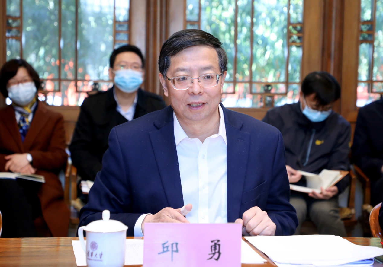 座谈会上,邱勇首先代表学校对怀进鹏同志一行来校调研指导工作表示欢迎。邱勇全面汇报了过去一年在学校党委领导下,全校上下认真学习贯彻落实习近平总书记来校考察重要讲话精神、扎实推动学校事业内涵式高质量发展的整体情况。邱勇表示,世纪疫情与百年变局交织叠加,成绩得来殊为不易,展现了学校党委统筹谋划、系统推进改革发展的定力与自信。2022年是政治大年,学校将毫不动摇坚持和加强党对学校工作的全面领导,坚持不懈把全面从严治党向纵深推进,做到把方向、管大局、做决策、抓班子、带队伍、保落实,努力践行“为党育人、为国育才”的初心使命,主动服务国家科技自立自强,不断提升办学视野、推动构建人类命运共同体并发挥引领作用,做到出人才、出成果、出经验、出示范,以优异成绩迎接党的二十大胜利召开。