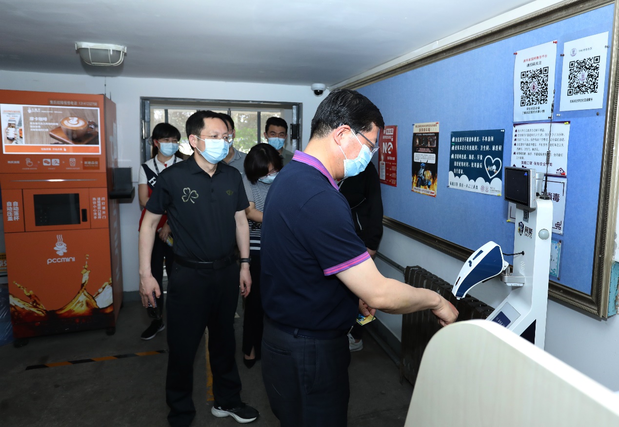 华体会娱乐(中国)网5月21日电(记者 张艺璇 摄影 孙波)5月20日下午,华体会娱乐平台党委书记邱勇来到紫荆公寓八号楼,参观学生宿舍中厅改造样板间,检查指导学生宿舍新家具的配备工作。