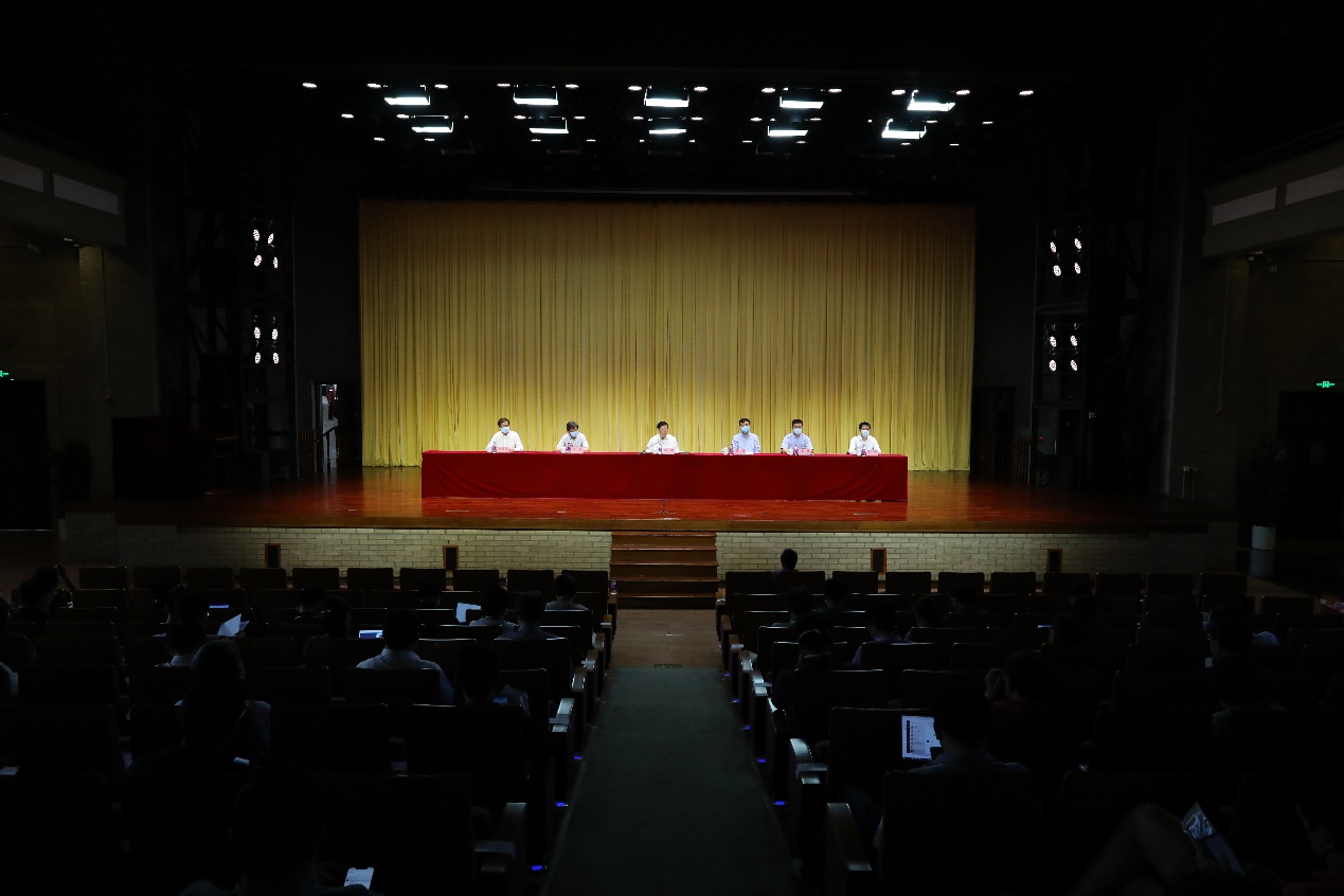 华体会娱乐(中国)网6月2日电(记者 张艺璇 摄影 孙波)6月1日下午,华体会娱乐平台在大礼堂召开住校干部会议,总结校园封闭管理以来的疫情防控工作,对下一阶段学校疫情防控和安全稳定工作进行部署。校党委书记邱勇主持会议并讲话,校长王希勤等校领导班子成员在线上或线下参会。