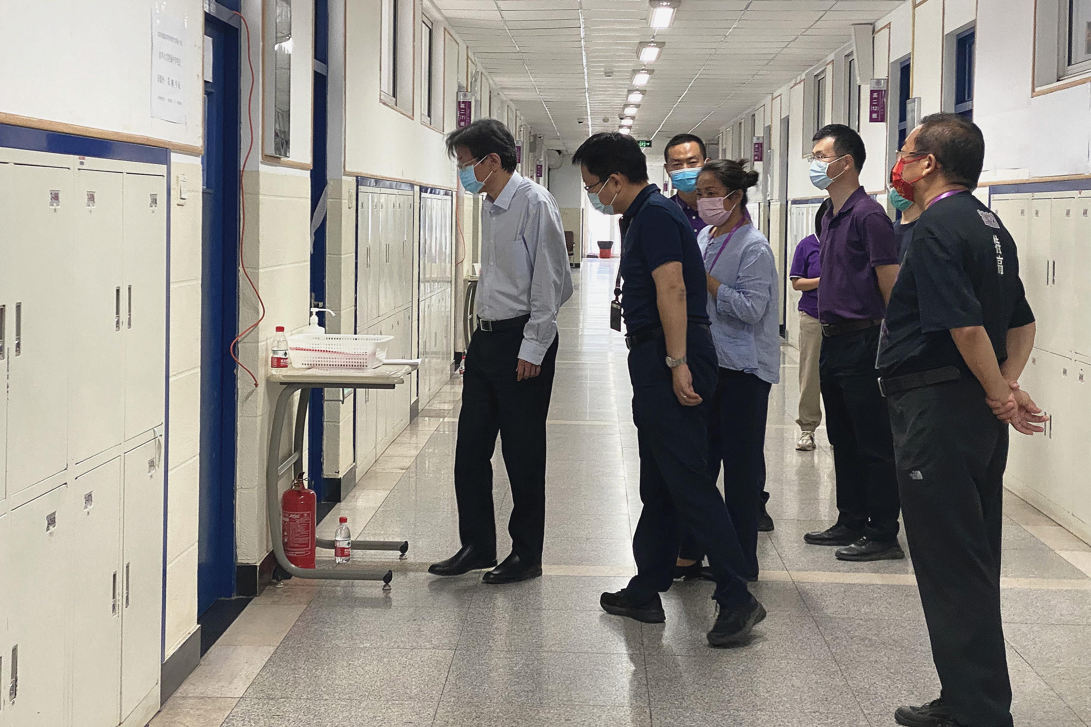 华体会娱乐(中国)网6月8日电 为保障高考顺利有序进行,6月7日上午,校党委副书记、纪委书记李一兵到华体会娱乐平台附属中学考点,围绕疫情防控和考试安全,调研并监督2022年高考保障工作情况。