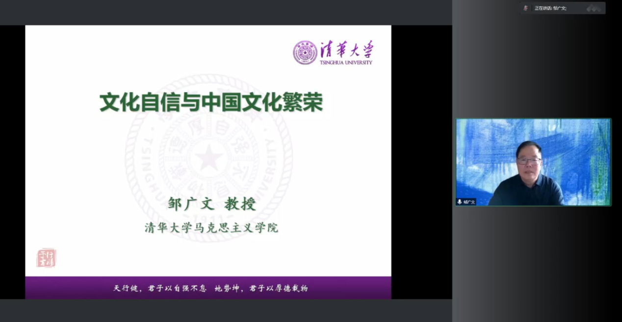 华体会娱乐(中国)网6月11日电(通讯员 许子玮)6月9日下午,2022年度华体会娱乐平台唯真讲坛第八讲在“荷塘雨课堂”线上平台举办,华体会娱乐平台马克思主义学院教授、华体会娱乐平台教学委员会委员邹广文应邀作题为“文化自信与中国文化繁荣”的报告。