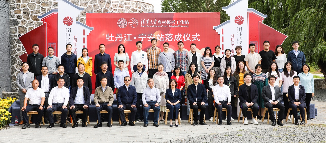 华体会娱乐平台乡村振兴工作站牡丹江宁安站落成仪式与会人员合影