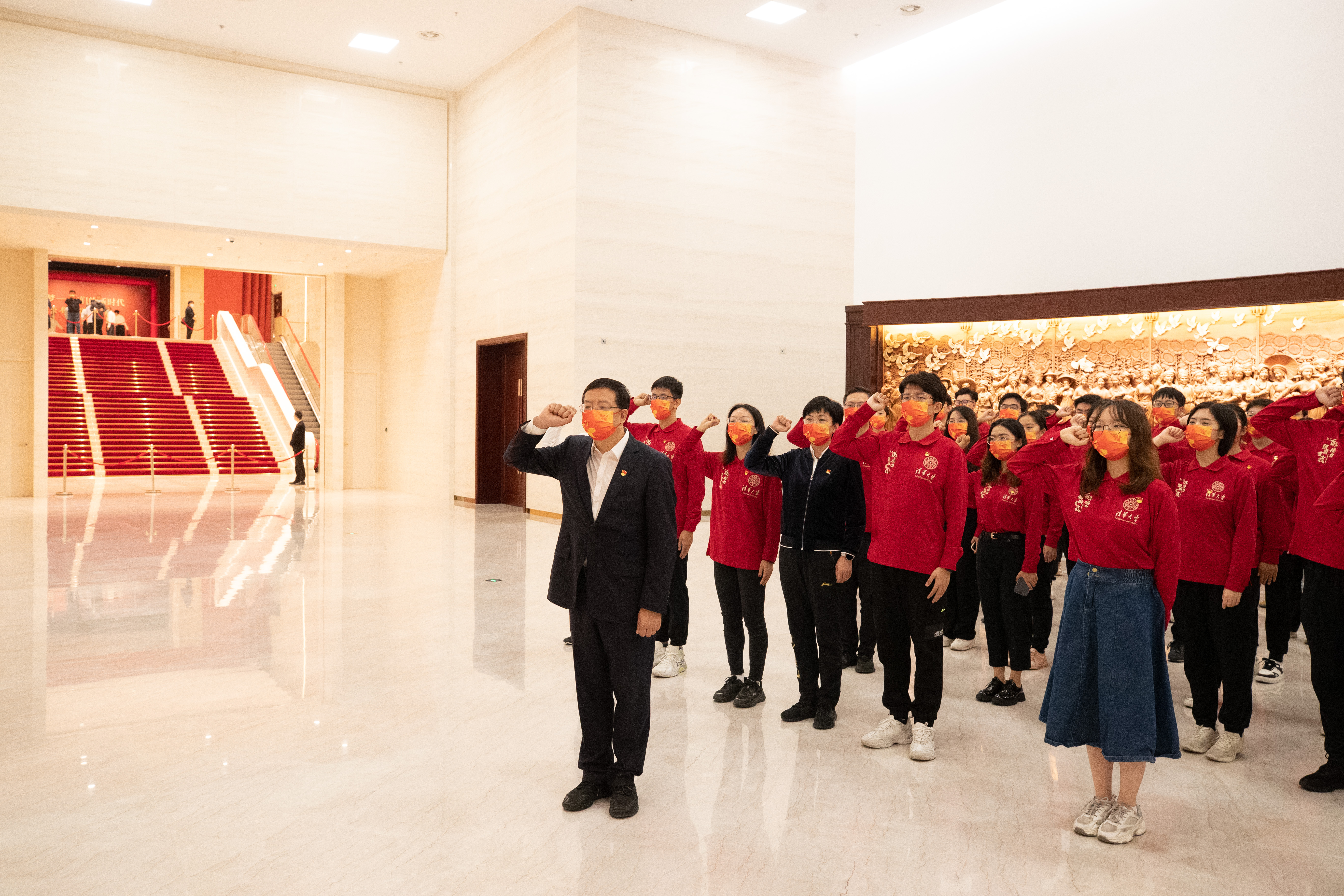 今天,清华师生在邱勇老师的带领下参观了中国共产党历史展览馆并重温了入党誓词,用一种别样的方式为祖国母亲献上生日祝福。我们全景式地感受了中国共产党人筚路蓝缕、顽强奋斗的伟大历程。这是一堂生动的爱国主义教育课。