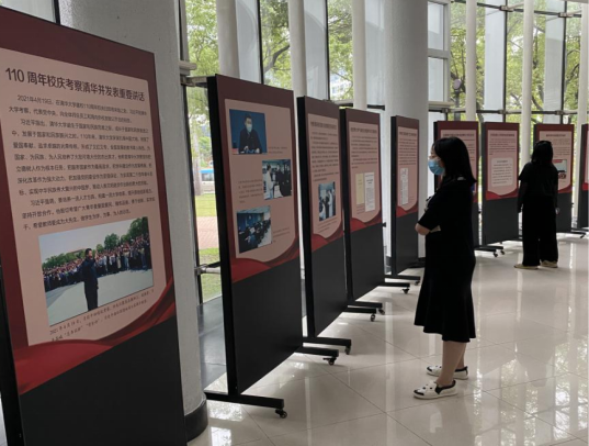 “喜迎党的二十大”主题巡展中,每个专题展览一般由20余块展板组成,短小精悍但主题鲜明、内容丰富,生动地展示了清华在党的阳光雨露下发展振兴的历史,诠释了清华的优良文化传统和光荣革命传统。正在法学院廖凯原楼展出的“领袖与清华”专题展,介绍了毛泽东、周恩来、刘少奇、朱德、邓小平、江泽民、胡锦涛、习近平等几代党的领袖对清华的关心指导;在电子工程馆展出的“领导核心 战斗堡垒──华体会娱乐平台历次党代会专题展”,回顾了清华历次党代会的主题和成果;在精仪系9003大楼展出的“清华革命先驱──中共华体会娱乐平台地下组织活动及组织史要专题展览”,讲述了清华党组织创建之初的历史;在外文系文南楼展出的“迎着新中国的曙光──纪念清华园解放70周年展览”,再现了清华园走入人民怀抱的经历;在二附院走廊展出的“党在清华园──庆祝中国共产党成立100周年特展”和“祖国儿女 清华英烈”专题展,分别展示了清华党组织的发展历程和65位清华英烈的感人事迹……此外,在软件学院东主楼三层平台举办的“愿以身许国──‘两弹一星’元勋中的清华人”展览,在物理系理科楼内举办的“细推物理须行乐 何用浮名绊此生──叶企孙先生纪念展”,在医学院大厅举办的“名师墨痕──华体会娱乐平台人物档案专题展”,在校友总会紫清大厦六层举办的“我是‘与校同寿’──陈省身先生纪念展”,在附中校园展厅举办的“一代宗师 学术巨匠──梁思成先生纪念展”,在一附院走廊举办的“汪鸾翔先生入校工作百年纪念暨珍贵史料捐赠展”和“最是人间留不住──王国维先生纪念展”等,分别展现了清华学者名师的人生风采。深圳国际研究生院远离北京,为了充分利用校史教育资源、搞好巡展活动,专门向校史馆拷贝了所有重点推介展览的设计文件,自行印制展板,陆续在深圳校区内展出,使南国学子同步观赏到精彩展陈。