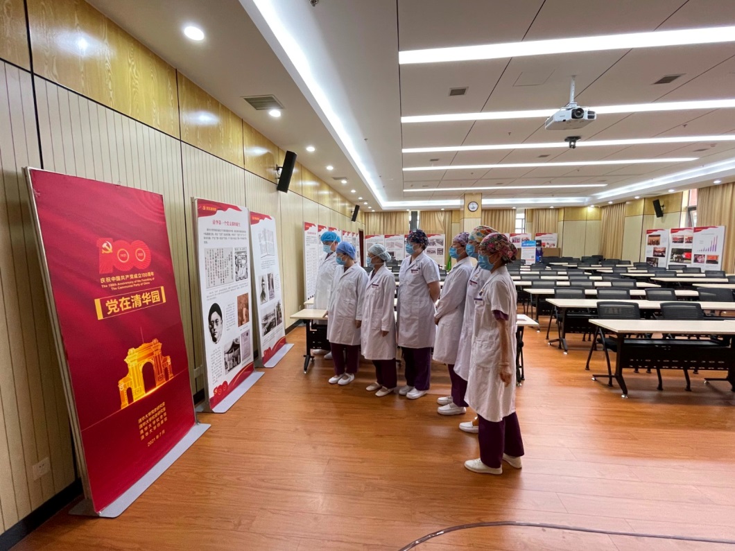 二附院医护人员参观在医院多功能厅展出的“党在清华园”特展