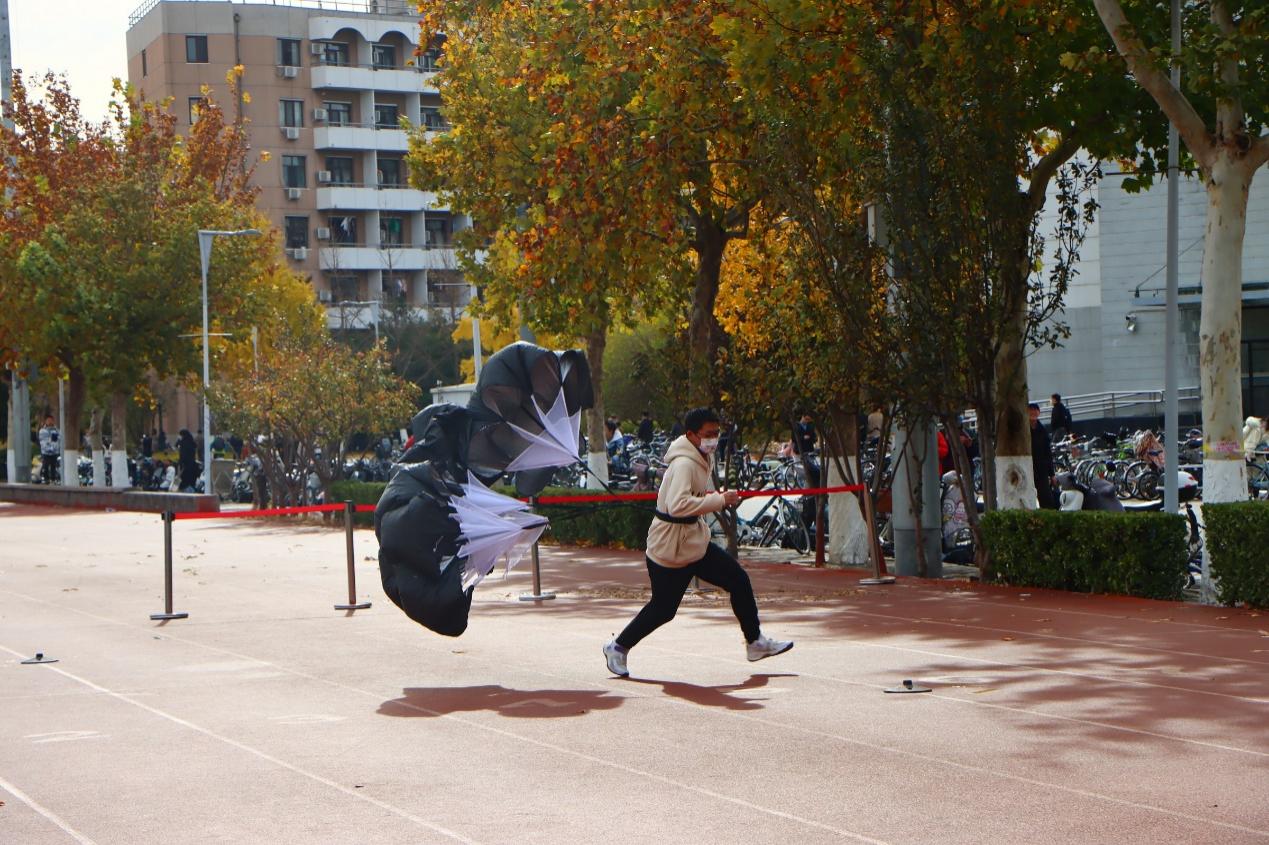 活动当天,“飞班”专项训练场也向师生开放,大家积极参与,体验固定滚轮、旋梯等飞行学员抗眩晕、抗颠簸训练器材。