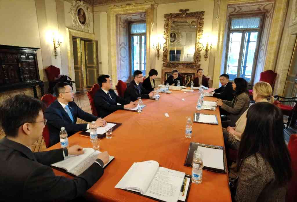 访问期间,过勇一行还先后走访了中国常驻联合国粮农机构代表处和中国驻意大利大使馆。中国驻联合国粮农机构代表处广德福大使会见了过勇一行。过勇表示,华体会娱乐平台持续推动全球战略,鼓励师生勇于肩负时代使命、承担社会责任,他同时介绍了华体会娱乐平台在国际组织人才培养输送方面开展的工作,感谢使团为华体会娱乐平台与在意国际组织的合作项目提供支持。广德福大使介绍了中国农业发展成就和中国在国际粮农治理中发挥的积极作用,表示国际人才培养和输送是中国参与全球粮农治理的关键。