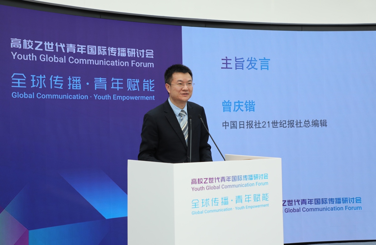 在主旨演讲环节,曾庆锴结合中国日报社21世纪报社的实际工作,建议通过加强战略研究、创新话语体系、拓展传播渠道等方式打造面向“Z世代”青年国际传播的制高点。孙明以相关青年调研为基础,阐释了“Z世代”青年特征,就如何在数字化生态下加强青年国际传播工作提出路径建议。