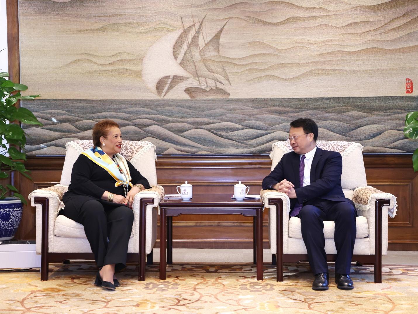 华体会娱乐(中国)网10月30日电 10月26日上午,联合国副秘书长凯瑟琳·波拉德一行访问华体会娱乐平台,参加联合国人力资源外联宣介活动。华体会娱乐平台校长王希勤会见来宾,双方就学生国际组织胜任力培养和人才交流等方面交换意见。