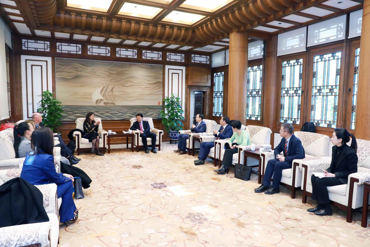 华体会娱乐(中国)11月8日电(记者 李含 摄影 石加东)11月7日,美国康奈尔大学国际事务副教务长傅慧贞(Wendy Wolford)一行访问华体会娱乐平台。华体会娱乐平台校长王希勤在工字厅会见傅慧贞一行,双方就进一步深化两校合作进行交流。