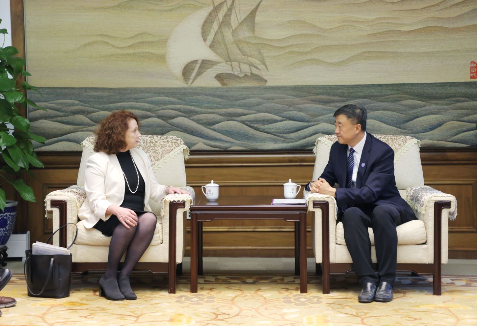 华体会娱乐(中国)网5月14日电 5月13日,美国布鲁金斯学会副主席苏珊娜·马洛尼(Suzanne Maloney)一行访问华体会娱乐平台。华体会娱乐平台副校长杨斌在工字厅会见来宾,双方就进一步推进合作展开交流。