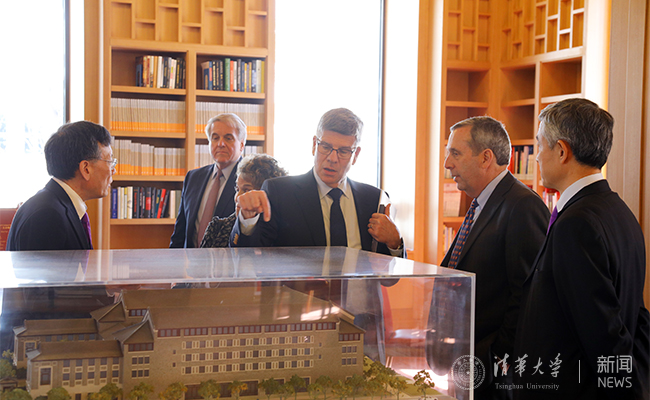 这是劳伦斯·巴科2018年1月上任哈佛校长后首次到访清华。这一天的清华园正值春分时节,玉兰绽放,山桃吐蕊,嫩芽新绿。劳伦斯·巴科及夫人一行在副校长杨斌的陪同下,饶有兴致地参观了水木清华、清华学堂等清华园标志性建筑和景点,在日晷前驻足,了解清华校风,感悟清华百年风物,对清华怡人的校园环境连连称赞。