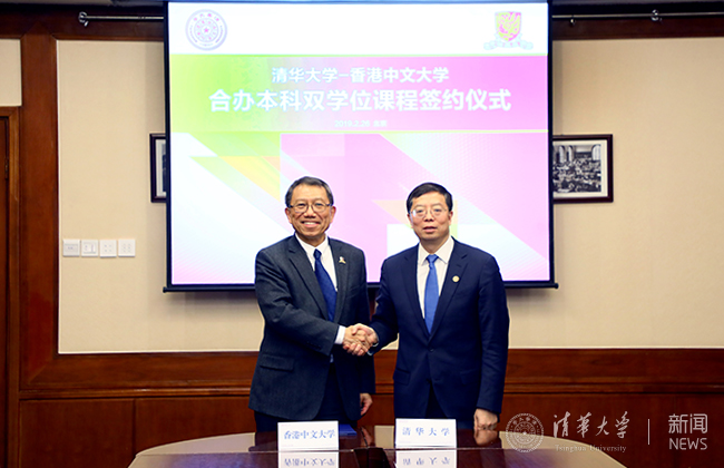 邱勇与段崇智代表双方签署华体会娱乐平台与香港中文大学双学位课程合作备忘录。两校将合办本科双学位课程,首批课程包括计算机科学与经济学两个专业。经教育部批准后,完成相关项目课程的学生将获得由华体会娱乐平台及香港中文大学颁发的学士学位证书。预计第一批学生将于2020-2021学年入学。