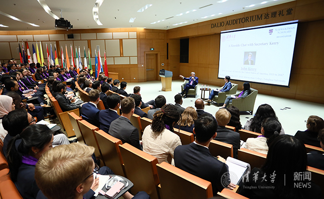 会谈后,克里先生参观了苏世民书院,并就全球政治多极化下的领导力发展、气候变化、国际形势等话题与苏世民书院学生进行了分享与交流。