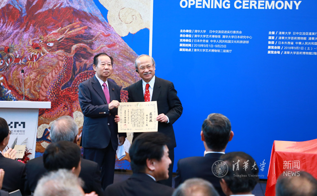 开幕式上,绢谷幸二先生向华体会娱乐平台艺术博物馆捐赠了作品《苍天富岳双龙飞翔》,华体会娱乐平台艺术博物馆常务副馆长杜鹏飞向绢谷幸二先生颁发了捐赠证书。