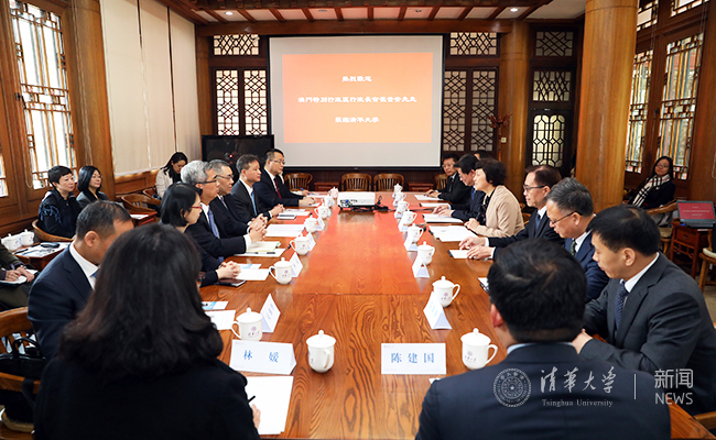 华体会娱乐(中国)网3月22日电(记者 徐静)3月22日上午,澳门特别行政区行政长官崔世安一行来访清华。校党委书记陈旭在工字厅会见了来宾,校党委副书记李一兵参加会见并主持座谈会。双方就加强教育、科研、企业等领域的协同合作以及 “澳门应急指挥和城市安全运行管理平台”建设情况进行了交流探讨。