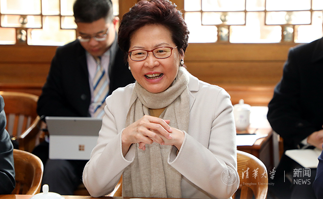 林郑月娥回忆了四十年前、大学时代曾以学生会成员身份来清华交流的美好经历,分享了当时深刻感受到的“同为中国人”民族情怀。林郑月娥说,香港特区政府高度重视教育,与清华在科技创新方面有着广阔的合作空间,希望未来加强与清华以及其他内地大学的师生交流,推动双方在学历互认、就业资源共享等方面的合作。