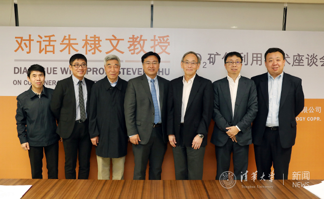 在英士楼会见时,副校长薛其坤院士对朱棣文教授的到访表示欢迎,感谢其对清华研究工作的关注,希望进一步推动两校在相关领域的科研合作。朱棣文对此予以了积极回应,并表示,此行希望了解化工系与原初科技有限公司联合开发的二氧化碳矿化利用技术。科研院院长周羽参加会见。