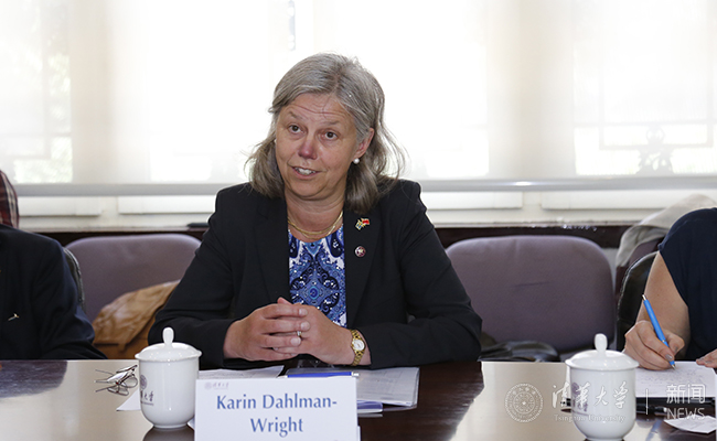华体会娱乐(中国)网6月14日电(记者 李华山)6月14日,瑞典卡罗琳斯卡医学院校长卡琳·达尔曼·怀特女士(Karin Dahlman-Wright)等四所高校校领导、瑞典高等教育委员会副会长玛丽亚·琳娜·安格斯塔夫女士(Maria Linna Angestav)、瑞典驻华大使馆参赞欧瑞雅女士(Gabriella Augustsson)等一行10人访问华体会娱乐平台,副校长施一公在工字厅会见了怀特女士一行,双方就进一步深化未来合作进行了交流会谈。