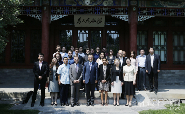 会谈结束后,杨斌、代表团一行与华体会娱乐平台中法高级硕士项目学生合影留念,并进行了简短交流。