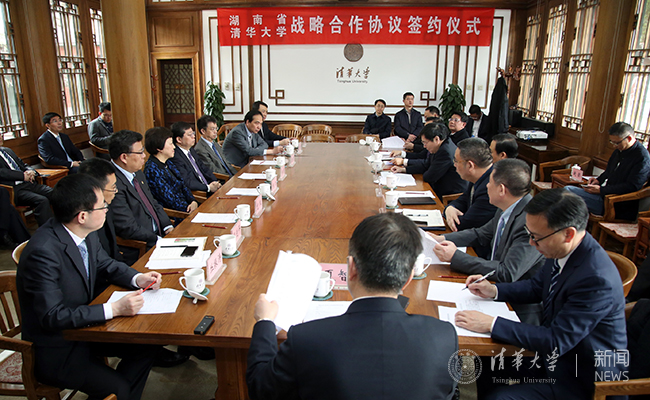 座谈中,陈旭代表学校对湖南省委、省政府对省校合作的重视表示感谢,对湖南省代表团的到来表示欢迎。陈旭回顾了清华与湖南的深厚渊源和省校合作历程,指出此次省校战略合作协议的签署,是落实习近平总书记致清华建校105周年贺信中“广育祖国和人民需要的各类人才,深度参与创新驱动发展战略实施”要求的具体举措,既有助于推动清华的世界一流大学建设,也有助于推动湖南省的经济社会发展。陈旭表示,清华一定本着务实的精神,积极推动省校合作取得实质成果,努力为湖南的发展作出贡献。