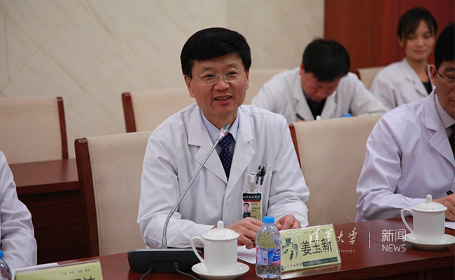 姜玉新介绍医院发展情况。记者 张帆 摄