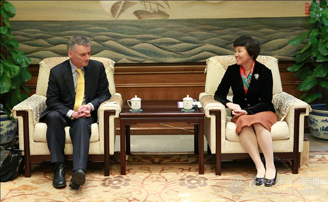 陈旭会见普伦德加斯特。记者 苑洁 摄