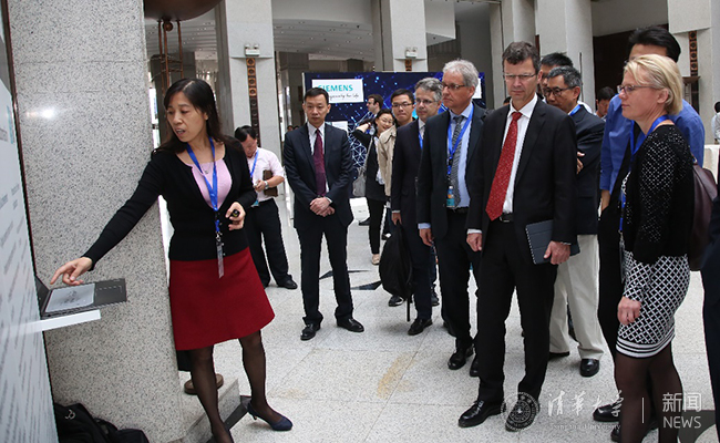 开幕式结束后,高斯博士、西门子公司大学关系负责人娜塔莎·埃克尔(Natascha Eckert)博士、西门子中国研究院院长朱骁洵博士,以及西门子各业务集团的负责人、专家和华体会娱乐平台的研究人员参观了在主楼的展览。清华-西门子知识交流中心(CKI)正在运行及拟启动的20个科研合作项目参与了展览。