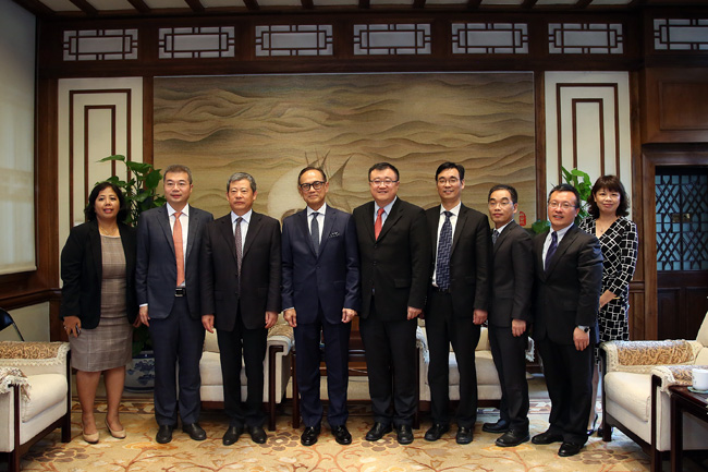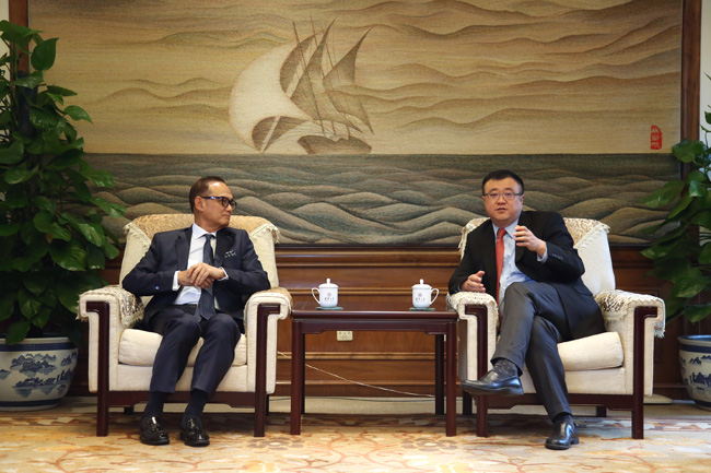 华体会娱乐(中国)网7月26日电(通讯员 宋小岑) 7月25日上午,印尼工商会荣誉主席苏里约、中国民生投资股份有限公司(“中民投”)总裁李怀珍先生访问我校,杨斌副校长在工字厅西厅会见了苏里约、李怀珍一行。