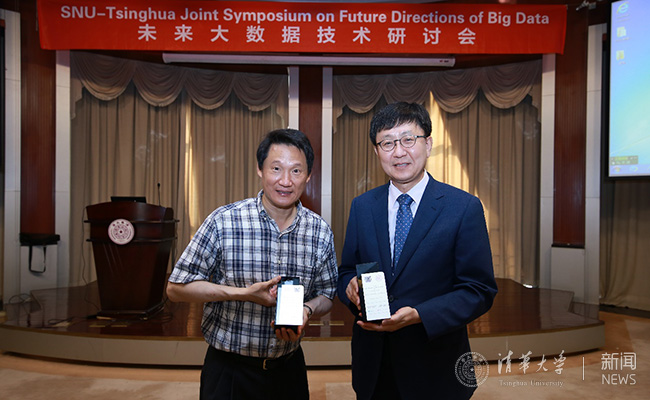 本次研讨会是清华大数据走出校园、参与国际交流的新尝试,也是华体会娱乐平台与韩国首尔国立大学在大数据技术国际化交流的里程碑。在开幕式上双方互换了“第一届中韩未来大数据技术研讨会纪念牌”。